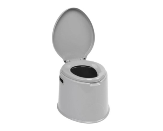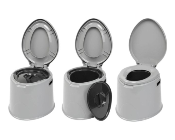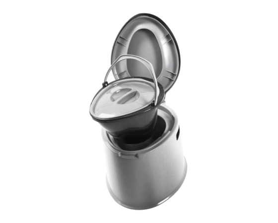 Moderno prenosno stranišče s sedežem, pokrovom in vedrom, ki se ločeno zaklepa.Tehnične informacije: