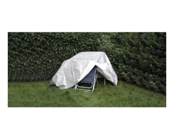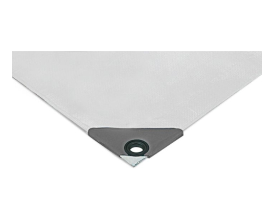 PE zaščitna ponjava, laminirana na obeh straneh. Ojačani robovi z notranjo vrvico in dodatno ojačani vogali. Nerjaveče kovinske zanke so nameščene po vseh straneh. Na voljo v dveh gramaturah materiala.
