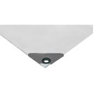 PE zaščitna ponjava, laminirana na obeh straneh. Ojačani robovi z notranjo vrvico in dodatno ojačani vogali. Nerjaveče kovinske zanke so nameščene po vseh straneh. Na voljo v dveh gramaturah materiala.