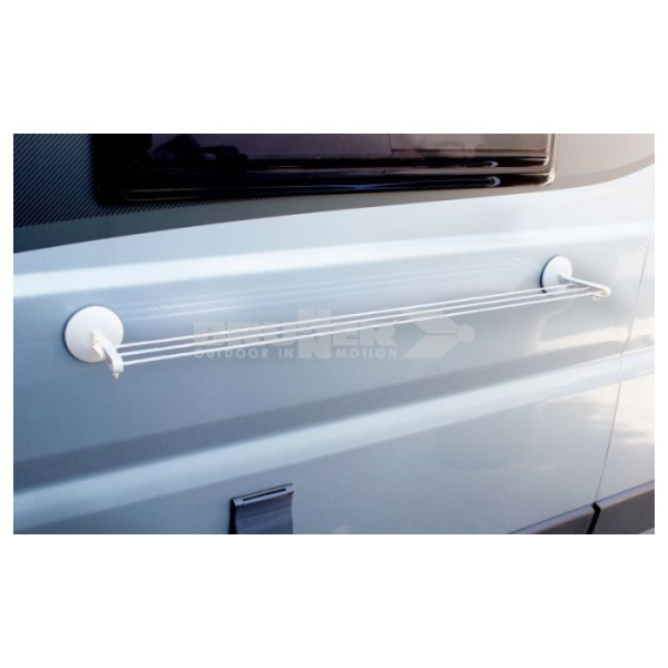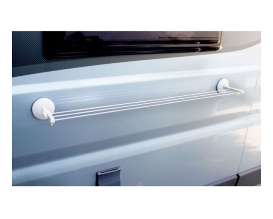 Naprava za sušenje perila s sesalnimi pokrovčki.
