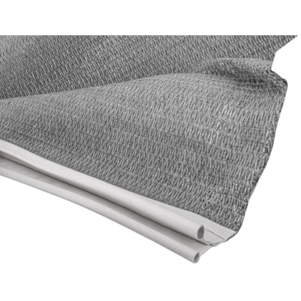 Udobna senčna tenda iz sintetične tkanine, odporne proti UV-žarkom. Po celotnem obodu je obrobljena in opremljena z očesci. Enostavna montaža na vodilo (tirnico) markize pri počitniških prikolicah, avtodomih, kombijih ali avtobusih. Primerna za večino modelov verand, ki so običajno na voljo na trgu. V kompletu so nosilne palice, klini in vrvi za pritrditev.