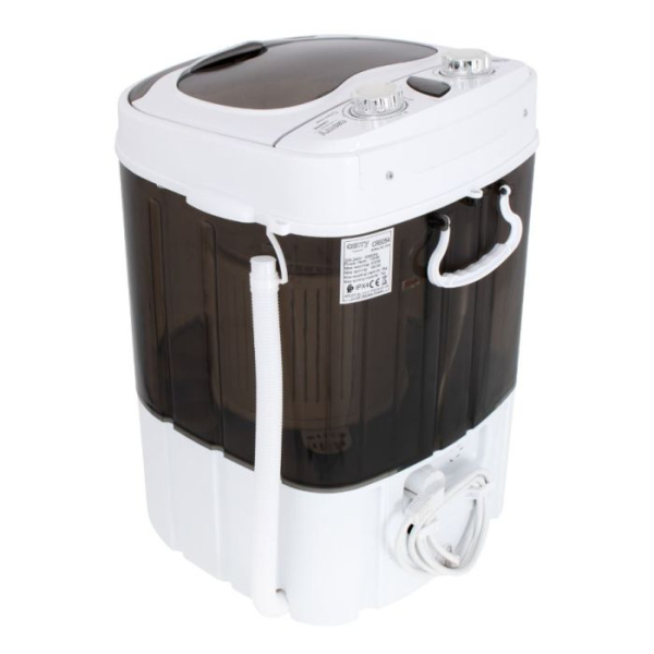 Ta majhen in lahek pralni stroj je popoln za potovanja, kampiranje ali celo za uporabo doma, ko vaš standardni pralni stroj odpove. S svojo kompaktno zasnovo se prilega tudi v najmanjše prostore, kot so počitniška vozila ali majhna stanovanja.