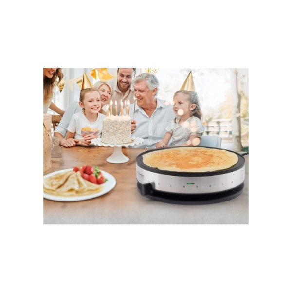 Zaradi vgrejenega grelnega elementa se celotna pekaška površina segreje izjemno enakomerno – odločilna prednost pred klasičnimi ponvami ali cenejšimi napravami. Vrhunski ILAG neoprijemljivi premaz preprečuje prijemanje, zato crêpes uspevajo brez težav – tudi brez dodatne maščobe. Z 8 temperaturnimi stopnjami, ki jih nastavite s praktičnim drsnikom, imate popoln nadzor nad peko.