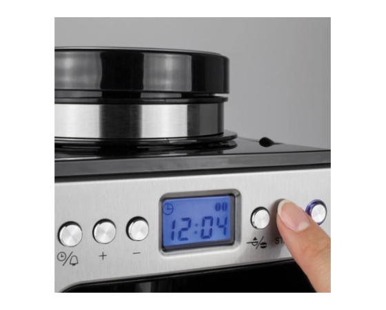 Vgrajeni časovnik vam omogoča popoln nadzor nad pripravo kave. Preprosto nastavite želeni čas in aparat začne s pripravo samodejno. Tako vas zjutraj pričaka aroma sveže pripravljene kave – brez čakanja. Pregleden LCD-prikaz zagotavlja posebej udobno upravljanje.