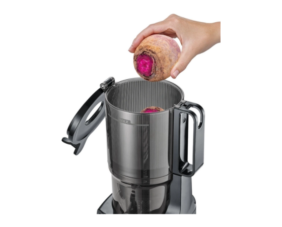 Zaradi izjemno velike polnilne odprtine s premerom 105 mm lahko stiskate cele kose sadja in zelenjave brez predhodnega rezanja. To prihrani čas in še dodatno poenostavi pripravo sokov. JuiceFit je idealen za vse, ki želijo hitro in udobno pripravljati sveže sokove.