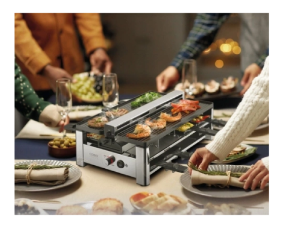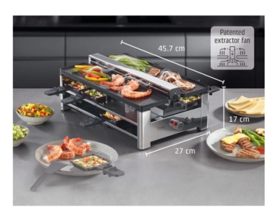Raclette žar z 8 nelepljivimi ponvicami (brez PFAS) za do 8 oseb