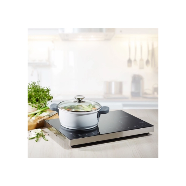 S kompaktno zasnovo in kakovostno popolnoma stekleno površino prinaša sodoben videz v vsak prostor. Samodejno zaznavanje posode poskrbi, da se kuhalna plošča aktivira le ob uporabi primerne indukcijske posode – za večjo varnost in manjšo porabo energije.
