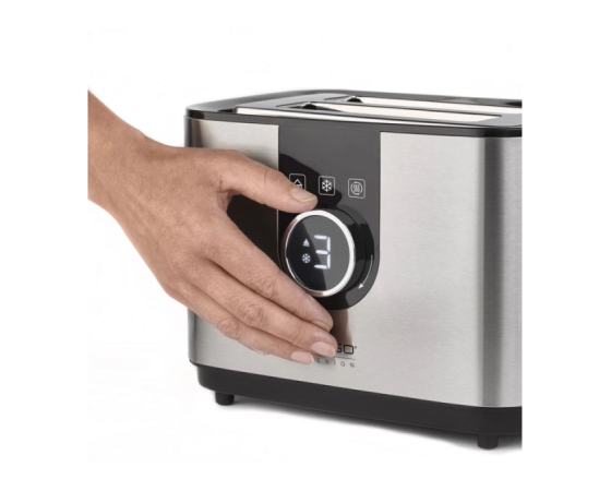 Sodoben opekač za dve rezini združuje elegantno obliko iz nerjavečega jekla in vsakodnevno praktičnost. Z intuitivno upravljalno ploščo na dotik, vrtljivim gumbom in jasnim LED-zaslonom omogoča enostavno pripravo popolno zapečenega kruha. Izbirate lahko med 7 stopnjami zapečenosti, uporabite funkcijo pogrevanja ali odmrzovanja, samocentrirni reži pa poskrbita za enakomerno zapečenost. Enostavno čiščenje in priročen grelnik za žemljice poskrbita za sproščena, brezskrbna jutra.