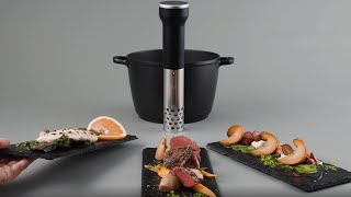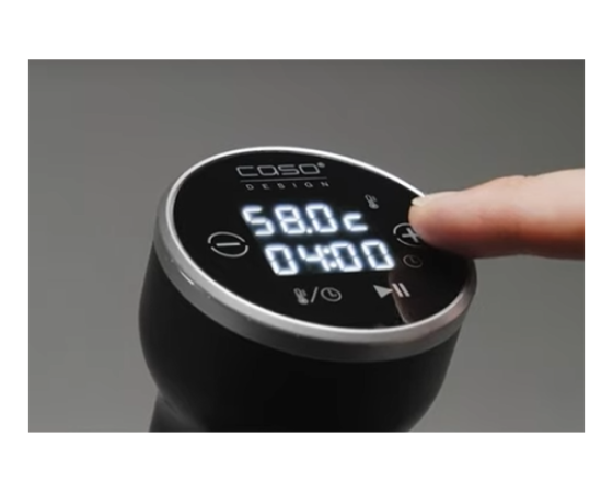 Sous-vide oziroma »kuhanje v vakuumu« postaja vse bolj priljubljeno tudi v domačih kuhinjah. Razlogi so jasni: živila ohranijo naraven okus, meso ostane izjemno mehko in sočno, hranila, vitamini in minerali se ne izgubljajo, zelenjava pa ohrani barvo in hrustljavost. S paličnim kuhalnikom SV 400 CASO Design postane profesionalna sous-vide priprava dostopna vsakemu domačemu kuharju.