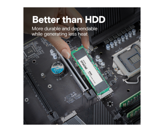 Crucial E100 480 GB PCIe Gen4 NVMe SSD prinaša odlično razmerje med hitrostjo, zanesljivostjo in ceno. Sodobni vmesnik PCIe 4.0 ×4 zagotavlja izjemno hitro delovanje z do 4.700 MB/s pri branju in do 2.500 MB/s pri pisanju. Kompaktna oblika M.2 2280 omogoča preprosto namestitev in učinkovito nadgradnjo vsakega računalnika.
