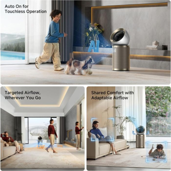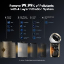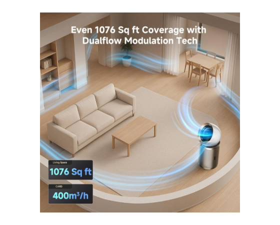 Ekskluzivna tehnologija Dualflow podjetja Dreame poveča učinkovitost filtracije za 33 %. Zgornji in sprednji izhod zraka omogočata pretok 400 m³/h čistega zraka in hitro ter enakomerno pokrivata do 100 m² prostora.