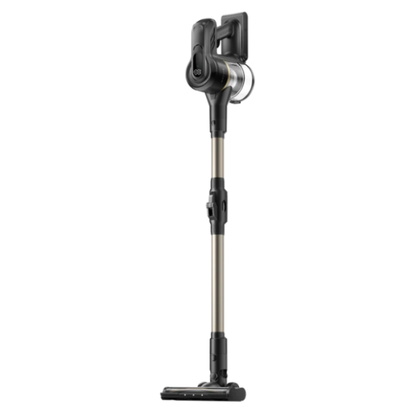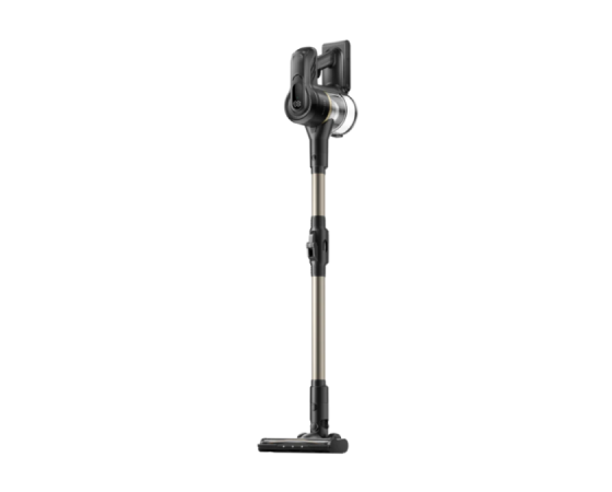 Zahvaljujoč pametnemu sistemu zaznavanja prahu se moč samodejno prilagodi količini umazanije, kar poveča učinkovitost in hkrati varčuje z energijo. Vgrajen LCD-zaslon prikazuje preostali čas delovanja, izbrani način sesanja in obvestila o vzdrževanju, kar omogoča popoln nadzor nad napravo. Litij-ionska baterija kapacitete 2 500 mAh na celico (skupaj 7 celic) omogoča do 90 minut delovanja v ekološkem načinu, kar zadostuje za temeljito čiščenje večjih površin. Baterija je snemljiva, zato jo lahko preprosto zamenjate ali napolnite ločeno.