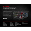 V kompletu boste našli USB tipkovnico z LED osvetlitvijo od zadaj, miško s 6 gumbi in LED osvetlitvijo, gaming podlogo za miško ter stereo slušalke.