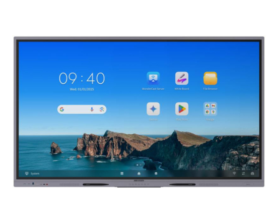 Hikvision DS-D5A86RB/A3 je 86-palčni interaktivni zaslon z ločljivostjo 4K UHD, zasnovan za pouk, predstavitve in sodelovalno delo. Panel tipa VA ponuja širok vidni kot, dobro kontrastno razmerje in antirefleksno steklo, ki zmanjš uje bleščanje ter omogoča jasno sliko v različnih svetlobnih pogojih.