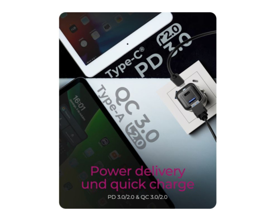 Kompatibilnost: podpora USB Power Delivery (USB-C) in hitrega polnjenja (USB-A)