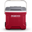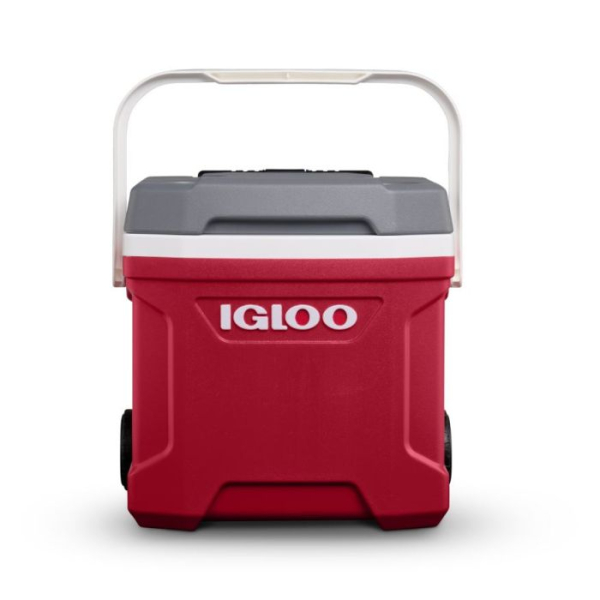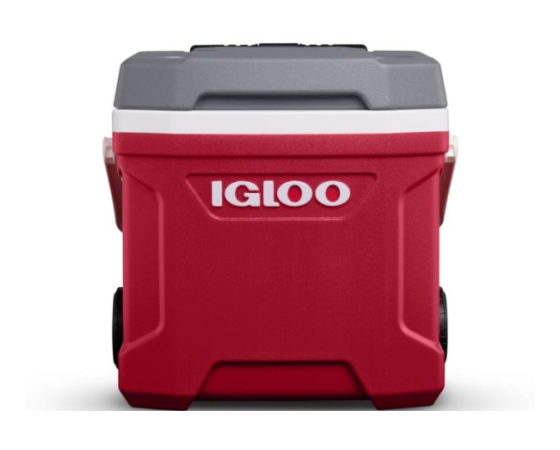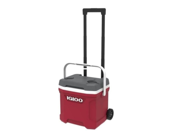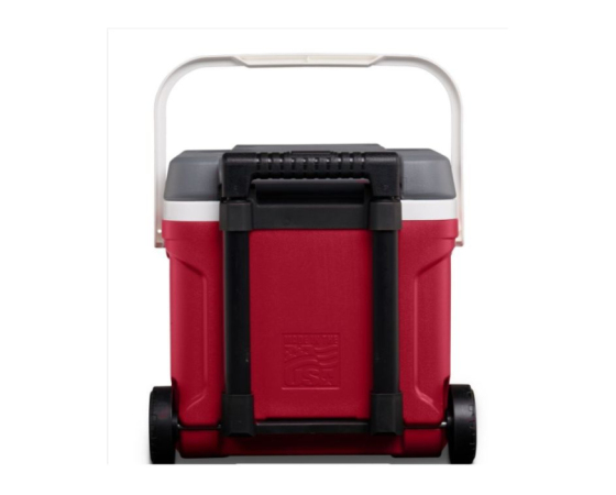 IGLOO Prenosna hladilna skrinja Latitude s kolesi za lažji transport. Teleskopski ročaj z zaklepom omogoča potiskanje ali vlečenje hladilnika. Izdelani stranski ročaji za enostavno nakladanje/razkladanje. Vgrajeni "izlivni kanali" v oblogi omogočajo enostavno čiščenje stopljenega ledu Tehnologija Cool Riser – dvignjena oblika izboljša učinkovitost hlajenja.