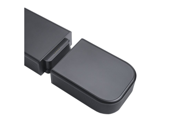 Preprosto dvignite odstranljive prostorske zvočnike z zvočne letve — to lahko storite celo z eno roko — in jih postavite za seboj v sobo za resničen prostorski učinek. Tako preprosto je.