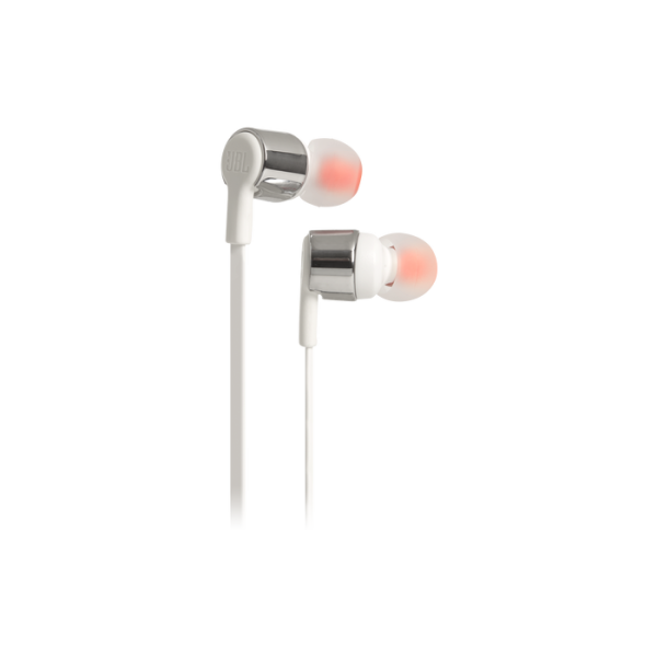 Predstavljamo ušesne slušalke JBL TUNE210. So lahke, udobne in kompaktne. Pod ohišjem s kovinsko dodelavo par 8,7-mm pogonskih enot nudi resne bas zvoke, tako da predvajajo močan zvok JBL Pure Bass, ki ste ga izkusili v koncertnih dvoranah, arenah in v snemalnih studiih po celem svetu. Poleg tega vam daljinec z eno tipko omogoča nadzor nad predvajanjem glasbe, kot tudi, da odgovarjate na klice kar spotoma z vgrajenim mikrofonom, zaradi česar so slušalke JBL TUNE210 vaše vsakdanje spremljevalke pri delu, doma in na poti.