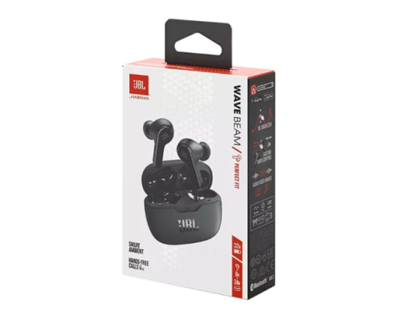 JBL Wave Beam, odporen proti vodi in prahu, je zasnovan za vsakodnevno zabavo z basom. Do 32 ur delovanja baterije in varna, udobna zasnova. Ne glede na to, ali se potepate po mestnih ulicah ali sproščate na plaži, bodo vaši prostoročni stereo klici vedno kristalno čisti, medtem ko tehnologija Smart Ambient skrbi za vašo okolico. In ko potrebujete dodatno spodbudo, lahko hitro napolnite dve dodatni uri energije v samo 10 minutah.