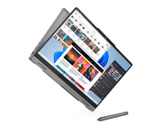 14-palčni prenosnik IdeaPad 5i 2-v-1, ki je kot nalašč za vsako opravilo, ne pozna meja. Njegov 360° tečaj omogoča neskončne možnosti in neprimerljivo prilagodljivost. Izdelate lahko poslovni načrt v načinu prenosnega računalnika, pretakate najnovejšo epizodo v načinu šotora, samozavestno predstavljate v načinu stojala ali izražate svojo ustvarjalnost s skiciranjem v načinu tablice. Zgrajen je z elegantnim kovinskim ali prefinjenim plastičnim pokrovom.