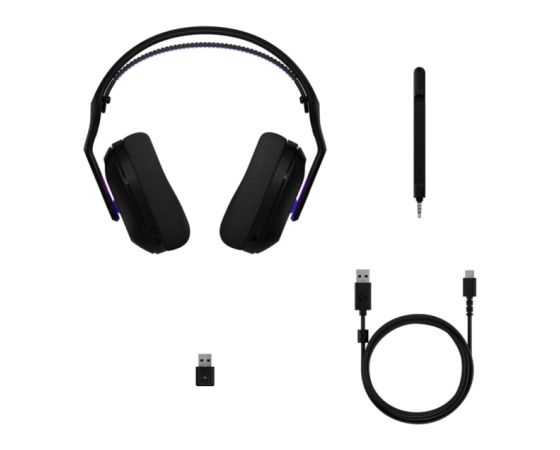 Slušalke so lahke (290 g) in udobne, z dvojno plastjo spominske pene, zračnim naglavnim trakom in naravno obliko ušesnih blazinic. Povežete jih lahko na tri načine: prek LIGHTSPEED brezžičnega dongla, Bluetootha ali USB-C kabla. LIGHTSYNC RGB osvetlitev ponuja osem prilagodljivih con z 16,8 milijona barv, ki jih lahko nastavite prek programske opreme G HUB ali G MOBILE.