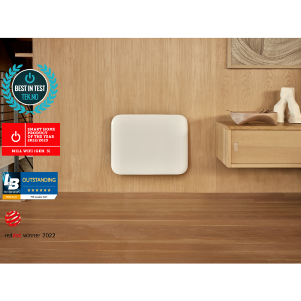 Nagrajeni Mill Invisible Smart WiFi Panel Heater združuje vrhunsko pametno tehnologijo ogrevanja s čistimi linijami skandinavskega dizajna. Zaradi elegantne ukrivljene sprednje plošče se popolnoma zlije z vsakim prostorom – diskreten, a zmogljiv vir toplote, ki dopolnjuje vaš interier.