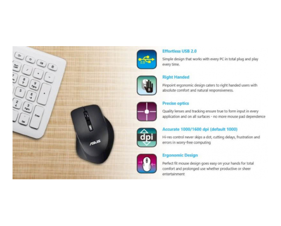 Miška ASUS WT425, brezžična, črna - 90XB0280-BMU000