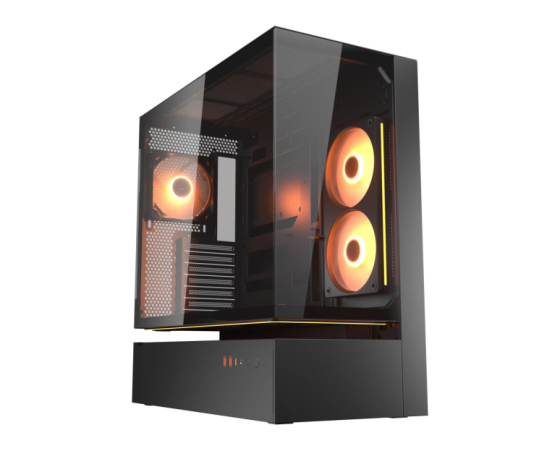 Osvetlitev Aurora RGB prinaša v prostor s prostim lebdenjem mogočnost in sijaj RGB osvetlitve. Prednameščeni ventilatorji COUGAR Unity 240 PWM z obrnjeno lopatico na strani matične plošče dodajajo še dodatno vrednost.
