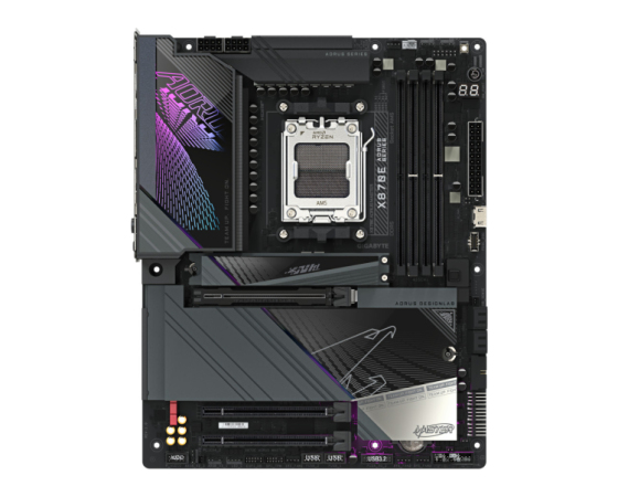 X870E AORUS MASTER ponuja napredno zasnovo VRM z 16+2+2 fazami in 110A Smart Power Stage, kar zagotavlja stabilno napajanje za procesorje AMD Ryzen. Napredno hlajenje VRM z AORUS LIGHTING in M.2 Thermal Guard XL poskrbi, da komponente ostanejo hladne tudi pod obremenitvijo.