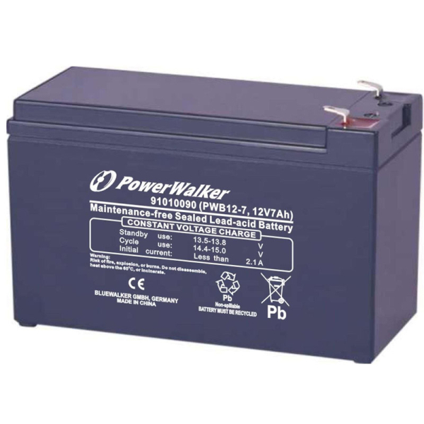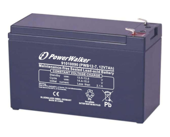 PowerWalker PWB12-7 je visokokakovostna 12-voltna, 7 Ah svinčeno-kislinska (VRLA) baterija, zasnovana posebej za uporabo v UPS napravah. Serija PWB12 je optimizirana za zanesljivo delovanje, dolgo življenjsko dobo in minimalno vzdrž evanje, zato je odlična izbira za domače in profesionalne sisteme neprekinjenega napajanja.