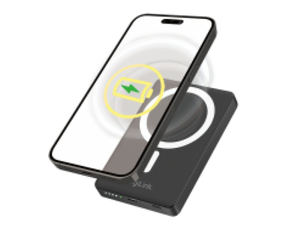 To powerbanko lahko uporabljaš tako za klasično polnjenje prek kabla (USB-C PD 20 W) kot brezžično polnjenje združljivih naprav do 15 W. Zahvaljujoč magnetni pritrdilni funkciji in vgrajenemu stojalu je primerna tudi za polnjenje telefona med gledanjem vsebin ali klici.