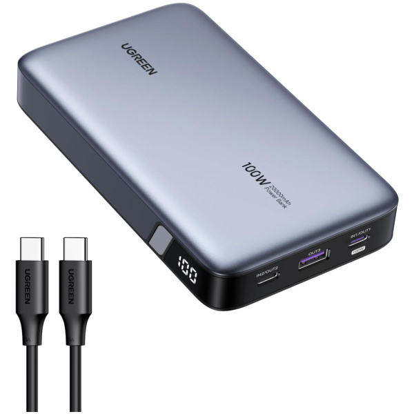 UGREEN USB C Power Bank 20000 mAh zdrži 5-7 dni baterije, popolnoma napolni iPhone 15 Pro do 4,5-krat in MacBook Air 15'' do 1,1-krat, idealno za potovanja, poslovna potovanja, kampiranje ali druge dejavnosti na prostem. Digitalni LED zaslon prikazuje preostalo raven baterije, status na prvi pogled, nič več ugibanja na podlagi nekaj majhnih LED