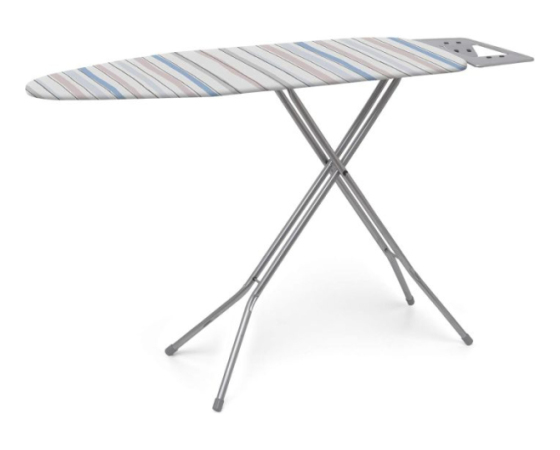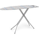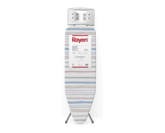 Rayen 6237.01 je osnovna likalna deska z dimenzijami 120 x 38 cm in črtastim vzorcem. Ima kovinsko mrežasto površino za likanje, ki omogoča učinkovito odvajanje pare. Višina deske je nastavljiva v sedmih stopnjah od 71 do 90 cm, kar omogoča prilagoditev glede na vaše potrebe. Poleg tega so noge opremljene z nedrsečimi gumijastimi nastavki za večjo stabilnost med uporabo. Deska je lahka, enostavna za uporabo in ne zavzame veliko prostora, kar je idealno za manjša stanovanja ali omejene prostore.