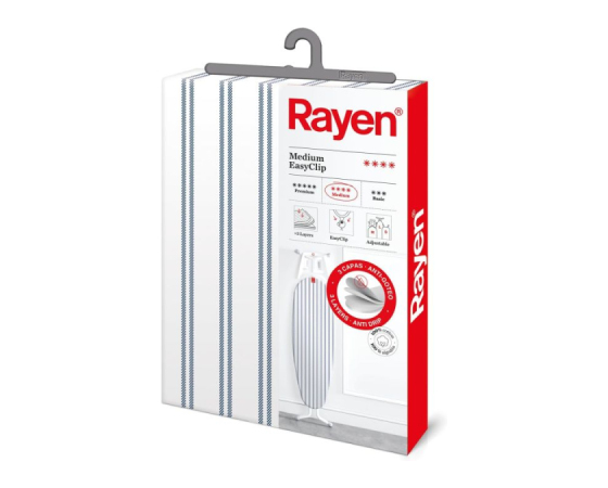 Rayen univerzalna prevleka za likalno desko omogoča udobno in učinkovito likanje, saj je zasnovana tako, da preprečuje nabiranje kondenzirane pare in s tem ščiti tla pred vodo. Izdelana je iz 100 % bombaža s tristransko podlogo iz pene, ki omogoča gladko drsenje likalnika in izboljšuje pretok pare zahvaljujoč mikroperforirani tkanini.