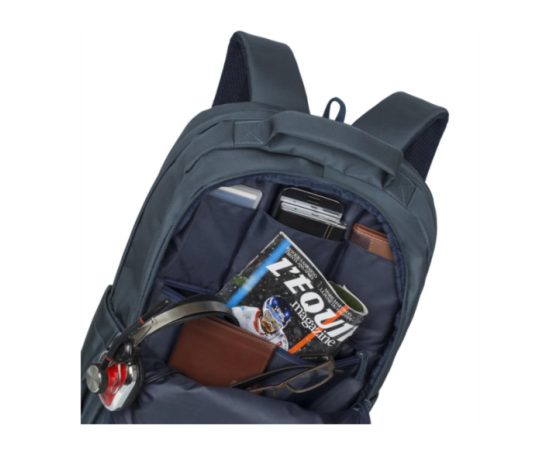 • Glavni navpični razdelek za shranjevanje vašega prenosnika ima mehke stranice in trak za boljši oprijem.