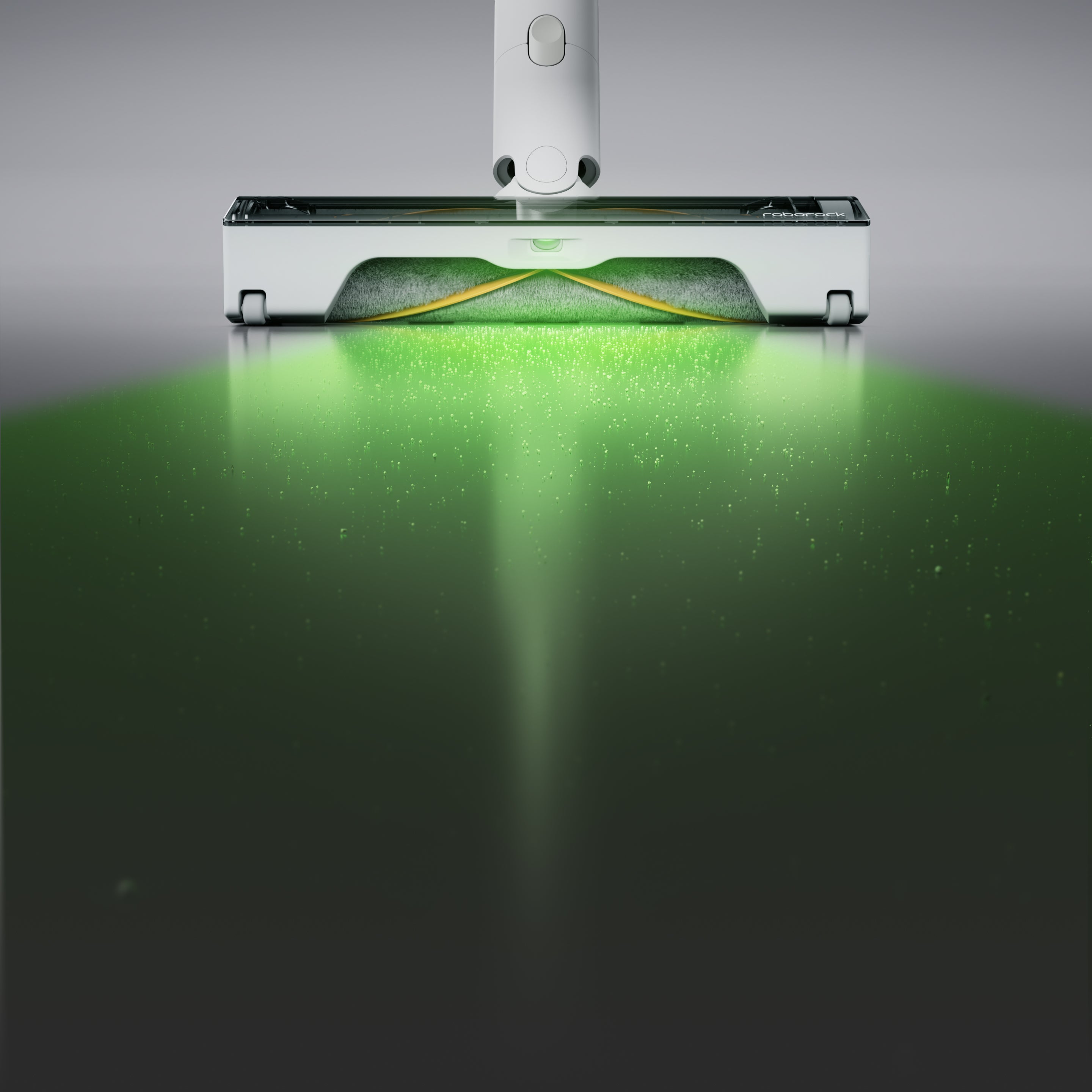 Natančno zasnovana zelena svetloba s širokim kotom 140° razkrije skriti prah in drobne delce, kar omogoča temeljitejše in lažje čiščenje.