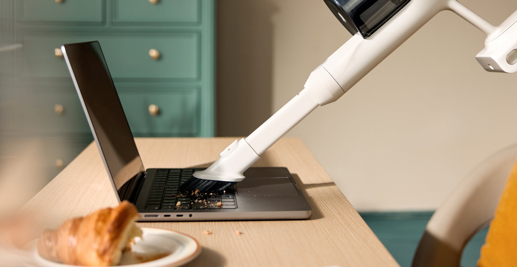 Motorizirana mini krtača odstranjuje prah in dlake hišnih ljubljenčkov s kavčev, postelj in tkanin brez zapletanja las.