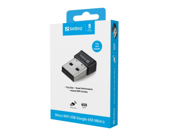 Ključek Sandberg Micro WiFi USB Dongle 650 Mbit/s omogoča dostop do brezžičnega omrežja preko vhoda USB.