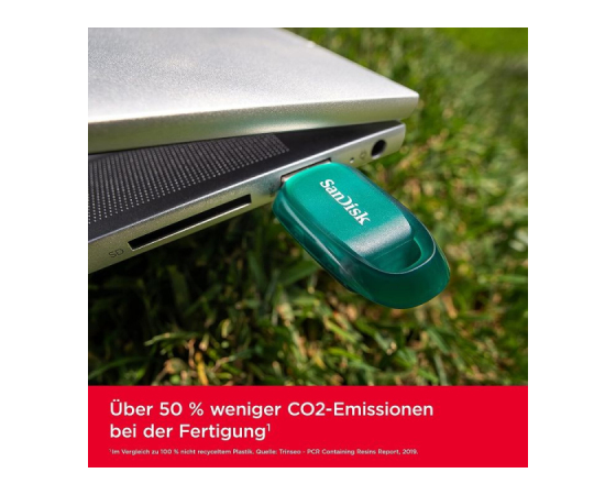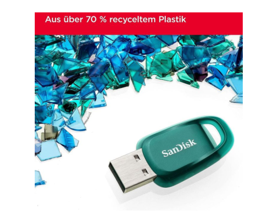 Flash disk SanDisk Ultra Eco™, zasnovan z mislijo na naš planet, je izdelan iz več kot 70 % reciklirane plastike, kot so plastenke za vodo za enkratno uporabo. To prihrani več kot 50 % emisij CO2, svežo vodo in energijo med proizvodnim procesom.2 S kapaciteto do 512 GB1 in časovno prihranljivimi hitrostmi prenosa do 100 MB/s3 pa lahko hitro shranite več najpomembnejšega.