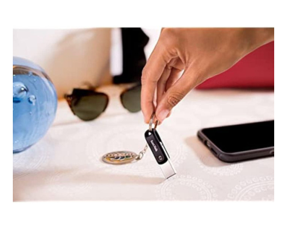 iXpand™ Flash Drive Go ima vrtljivo zasnovo, ki ščiti njegove konektorje, ko ga vržete v torbi ali žepu, luknja za obesek za ključe pa omogoča enostavno pritrditev na obesek za ključe. Zato je vedno priročen, če morate sprostiti prostor, ko ste zunaj.