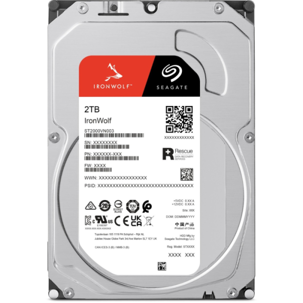 ST2000VN003 iz serije Seagate IronWolf ponuja 2 TB kapacitete in je posebej optimiziran za NAS okolja z do 8 ležišči. Disk uporablja tradicionalno CMR tehnologijo zapisa, ima rotacijsko hitrost 5900 RPM in 64 MB predpomnilnika. Namenjen je zanesljivemu 24/7 delovanju z letno obremenitvijo do 180 TB. Z vgrajenimi senzorji rotacijskih vibracij in podporo za NASware firmware zagotavlja stabilno in učinkovito delovanje v večdiskovnih konfiguracijah.