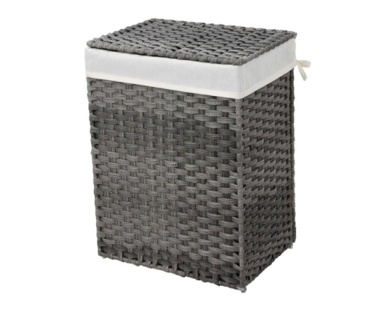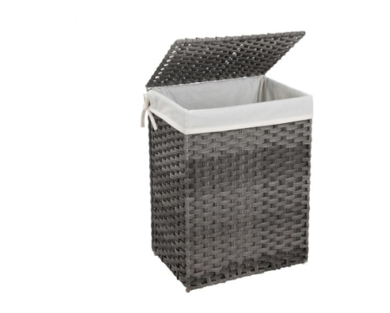 KAJ DOBITE: Ročno pleten koš za perilo z odstranljivo podlogo in stranskimi ročaji, ki je primeren za shranjevanje perila zunaj vidnega polja ali kot škatla za shranjevanje.