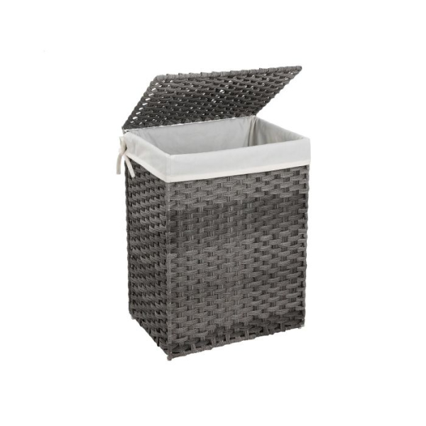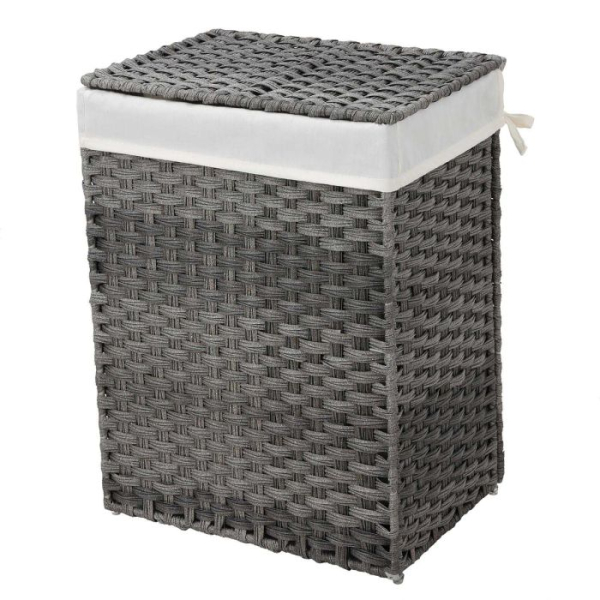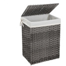 SONGMICS Ročno tkana košara za perilo, 90L košara za oblačila iz umetnega ratana s pokrovom in ročaji, zložljiva, odstranljiva podloga, siva LCB51WG