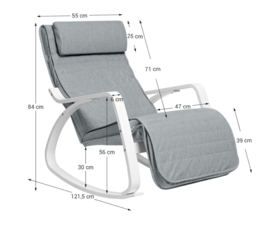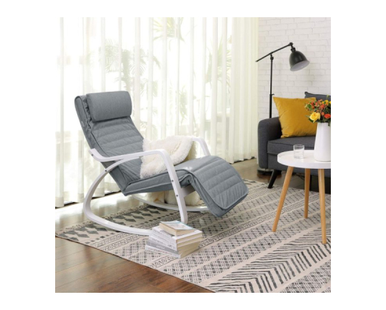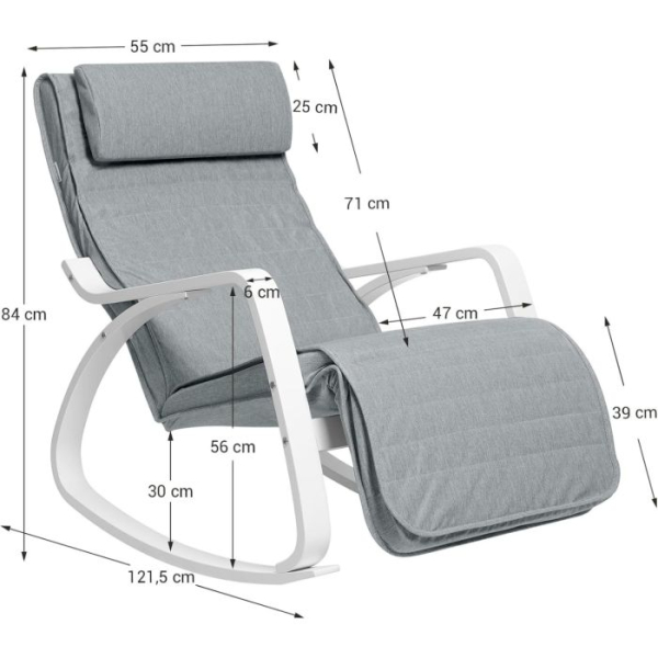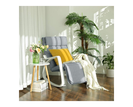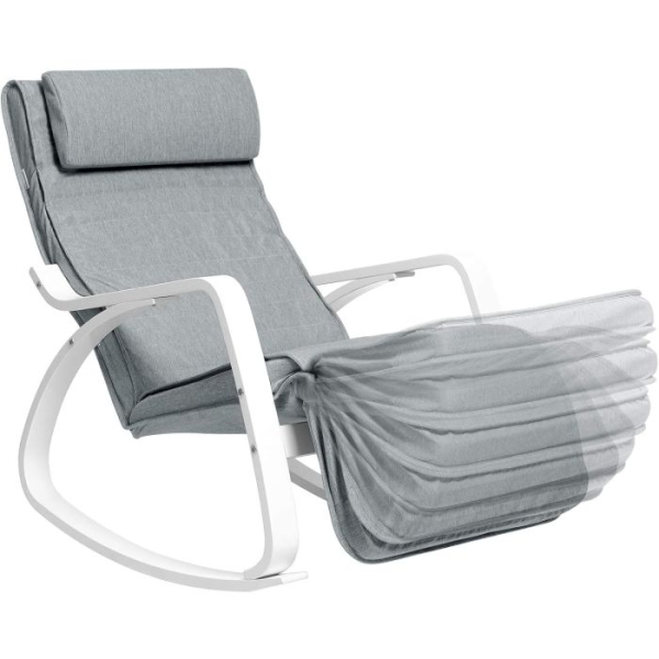 Začutite sprostitev v domačem ambientu z SONGMICS gugalnim stolom iz breze, oblikovanim za prijetno in udobno izkušnjo. S svojim občutkom naravnega lesa in prevleko iz imitacije lanenega tekstila v svetlo sivi barvi se odlično poda v vsak prostor. Gugalni mehanizem in nastavljivo podnožje ponujajo pet položajev za noge, prilagojene vašim potrebam – od popolne sprostitve do večje podpore nogam. Stojalo je stabilno in nosi do 150 kg, tako da uživate varno in zanesljivo. Enostavno ga sestavite in takoj začnete z uživanjem ob branju, gledanju televizije ali počitku po dolgem dnevu.