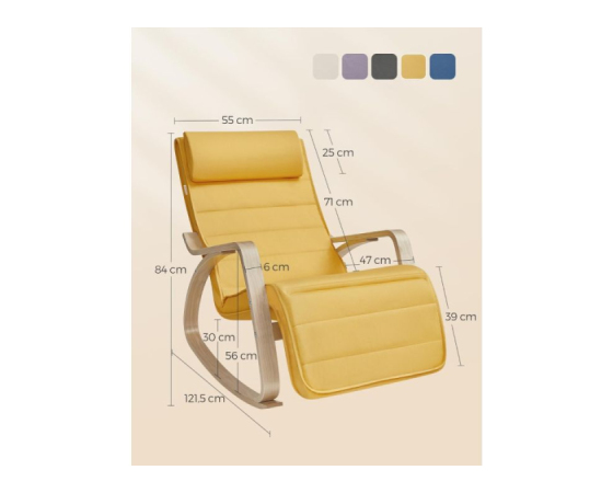 Privoščite si popoln trenutek sprostitve z elegantnim gugalnikom SONGMICS. Stabilno ogrodje iz vezane breze poskrbi za nežno in varno zibanje, medtem ko mehko oblazinjen sedež in naslona za roke nudita izjemno udobje. Prevleka iz svetlo sive tkanine je prijetna na otip in hkrati odporna na obrabo. Poseben poudarek je na nastavljivem podnožju za noge z 5 položaji, ki omogoča popolno prilagoditev vašemu počitku – ne glede na to, ali berete, gledate televizijo ali samo počivate. Sodobna oblika se lepo vključi v vsako dnevno sobo, spalnico ali kotiček za sproščanje.