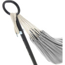 Prihranite si težave: Ali še vedno iščete dve primerni drevesi za pritrditev viseče mreže? Ali pa nameravate na svojem vrtu celo posaditi dve drevesi? Stop! Ta viseča mreža je opremljena s stojalom. Vse, kar morate storiti, je, da si vzamete nekaj minut za postavitev tega kompleta viseče mreže, in vaš vrt se bo v hipu spremenil v zatočišče. naša ključna beseda - udobje! Vreča je izdelana iz bombažno-poliesterske tkanine ter je zračna in udobna. Okvir je stabilen in zanesljiv ter izdelan iz trpežne kovine. Ležite v viseči mreži in se počutite sproščeno in srečno - kako udobno življenje!