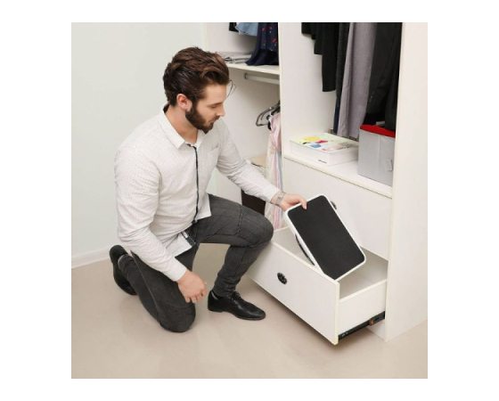 Izdelek:Barva: belaMaterial: Nosilnost: 150 kgMere izdelka v zloženem stanju: 37,5 x 4 x 26,5 cm (širina x višina x globina)Višina zložene: (17 cm)Teža: 1,5 kg