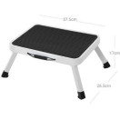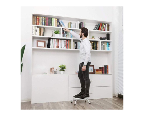 S štirimi navzven obrnjenimi stopnicami z nedrsečimi gumijastimi pokrovčki stopnica zagotavlja odlično stabilnost in preprečuje nevarnost prevrnitve; zložljiva varnostna naprava je zavarovana z varnostnimi gumbi. zložljiva stopnica s kompaktnimi dimenzijami in praktičnim ročajem je zelo enostavna za shranjevanje in prenašanje sem ter tja. izjemno velika in nedrseča tekalna površina (38 x 26 cm) z rebrasto protizdrsno podlogo zagotavlja udobno in varno plezanje. ta praktična zložljiva stopnica iz trpežne kovine proizvajalca Songmics je uporaben pripomoček za vaše gospodinjstvo v vsakdanjem življenju, ko morate doma doseči nekoliko višje lege ali vrata omare. Zaradi zložljive zasnove je lestev zelo enostavno in prostorsko varčno postaviti kamor koli, po potrebi pa jo lahko hitro vzamete nazaj.