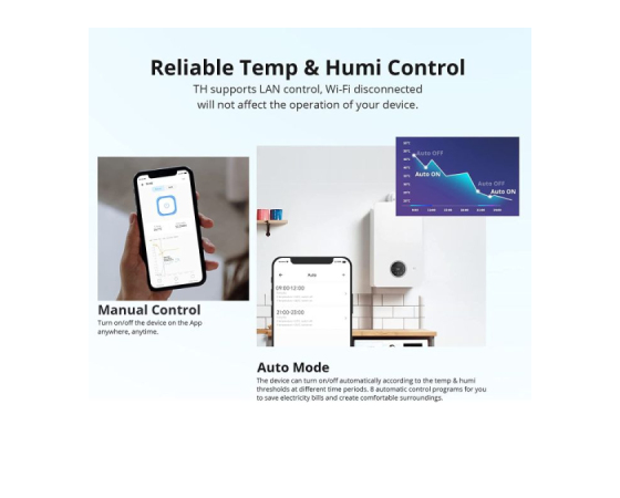Podpira nadzor LAN, naprava se lahko samodejno vklopi/izklopi glede na pragove temperature in vlažnosti v različnih časovnih obdobjih. Nastavite lahko 8 samodejnih krmilnih programov, da prihranite pri računu za elektriko.