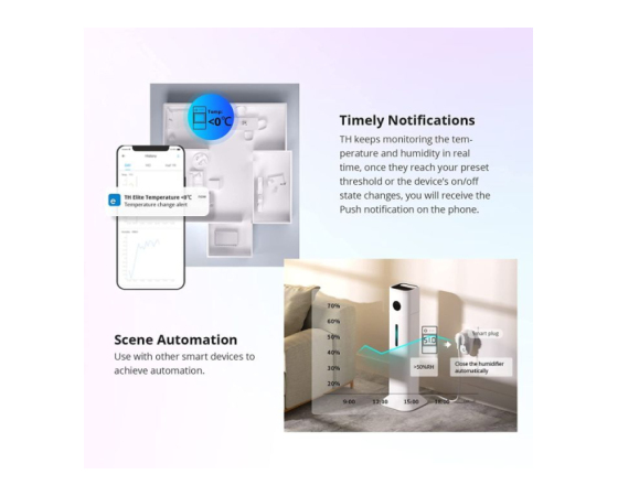 Združljivo z Alexa, Google Assistant. Omogoča možnost vklopa/izklopa in preverjanje temperature in vlažnosti.